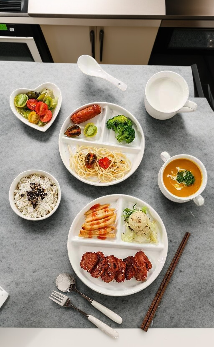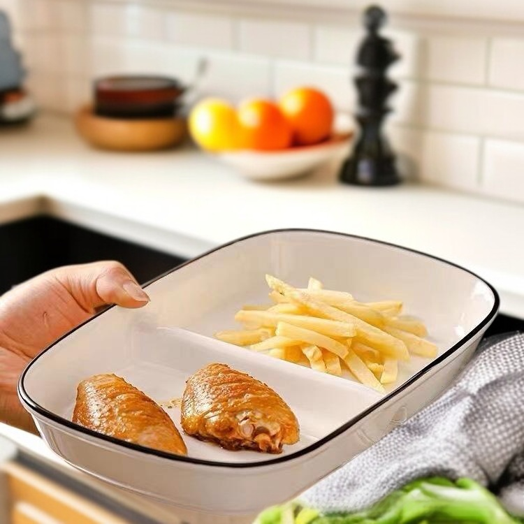 Color: 8.2-inch white round divided plate, 9.5-inch white round divided plate, 8.2-inch white round divided plate with black lines, 9.5-inch white round divided plate with black lines, 12-inch white 5-compartment plate, 12-inch white 5-compartment plate with black lines, 10-inch white square compartment plate, white double-handle bowl, white heart-shaped bowl, white breakfast cup, 10-inch white square compartment plate with black lines, double-handle bowl with black lines, breakfast cup with black lines, 10-inch rectangular two-compartment plate with black lines, 10-inch rectangular three-compartment plate with black lines, 10-inch double-handle square plate with black lines, 10-inch double-handle round plate with black lines, 12-inch white 4-compartment plate, 12-inch white 4-compartment plate with black lines, white small spoon, new model 4-compartment plate with black lines, new model white 4-compartment plate, 10-inch embossed compartment plate with black lines, 10-inch embossed white compartment plate, 10-inch double-handle oval compartment plate with black lines, 10-inch double-handle white oval compartment plate, new model double-handle bowl with black lines