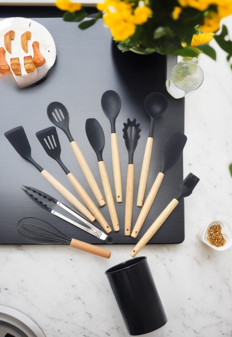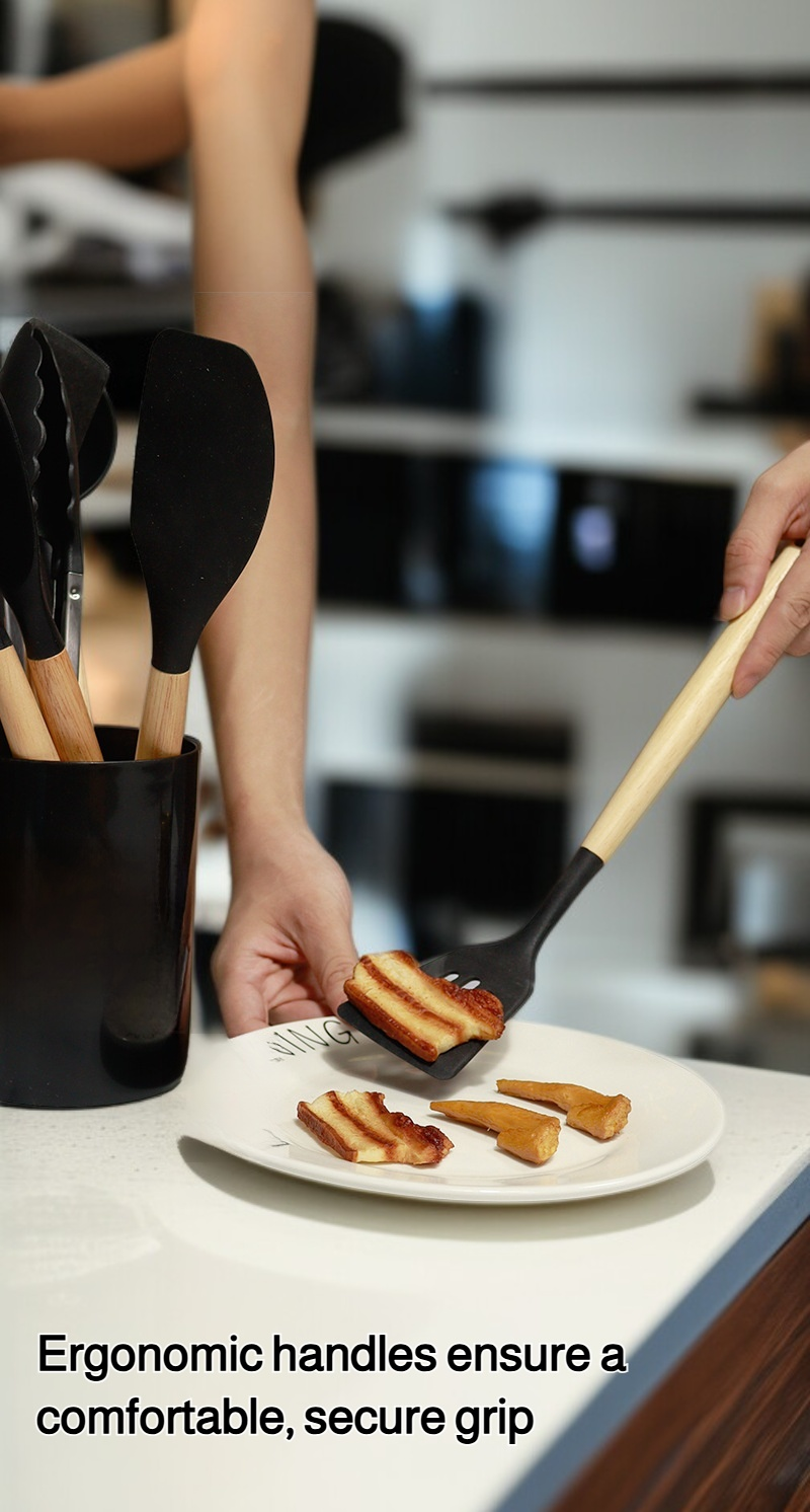 12-piece silicone kitchenware set offers heat resistance, non-stick design, easy cleaning, durable materials, ergonomic handles, and versatile tools for efficient cooking.