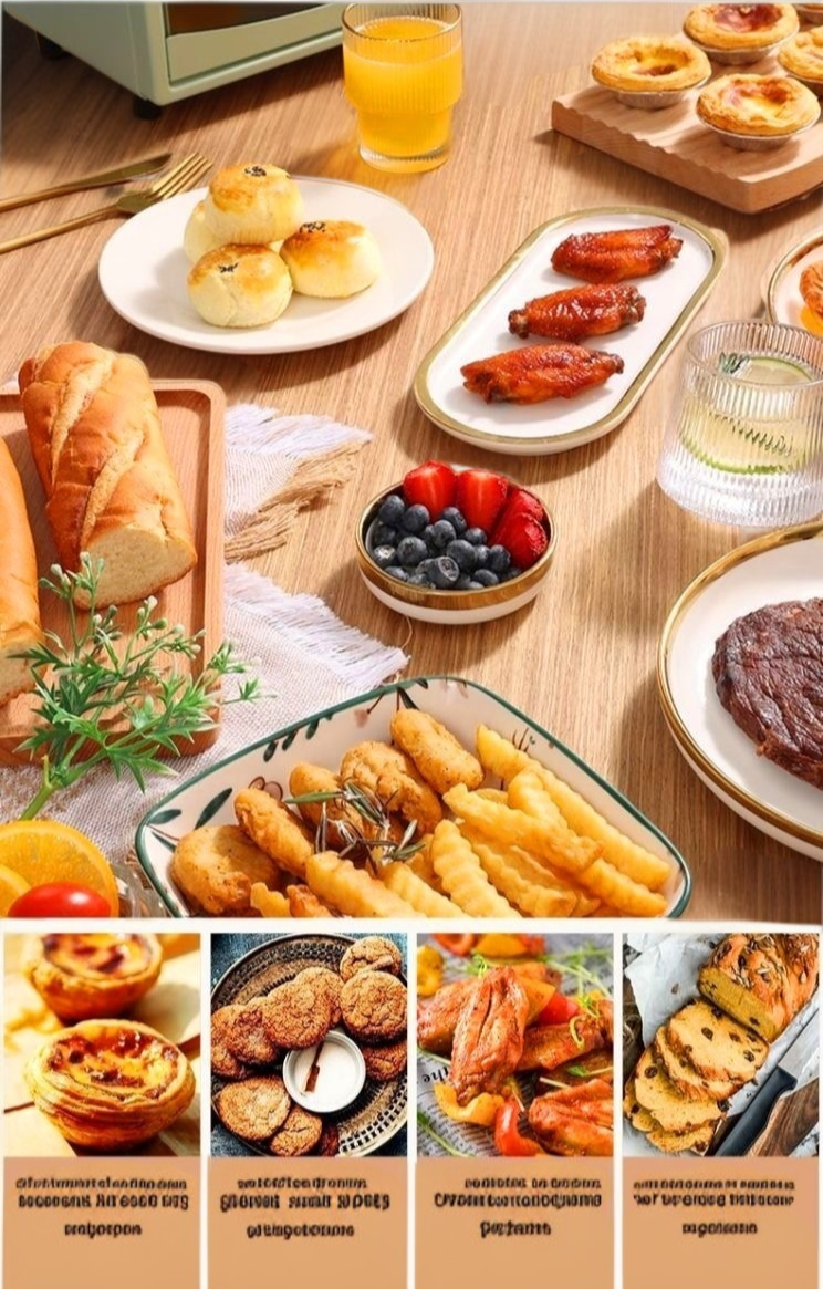 Versatile electric oven for baking, grilling, and roasting. Compact design saves space, easy-to-use controls, fast heating, energy efficient, suitable for various recipes.